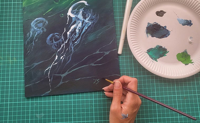 Hi, friend! My name is Julia. I am an artist… and also designer, traveler, skier, diver, mother of a teenager, history and cat enthusiast, an absolute optimist... I was born on the border between Europe and Asia, which left its mark on my art. My parents spoke Russian, my son speaks Czech, and my heart was taken by Germany. I studied classical painting with talented teachers and I was also fascinated by the Japanese technique of Sumie. I have dedicated several years to this unique technique (please look here: https://jukasumi.etsy.com) Now I live in the Europe, do contemporary painting and constantly evolving in my creative endeavors. My life has been full of movements and changes. Several times I had to start from scratch, and of course, there were difficult times. And then I wanted freedom and lightness so much! And this became the theme of my works.