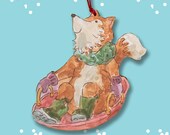 5 out of 5 starsItem as described. Unique little fox enjoying a speedy downhill ride on a flying saucer. A cute holiday tree ornament or stocking stuffer or gift box embellishment. Very well made. Shipped quickly. Would order from this shop again.