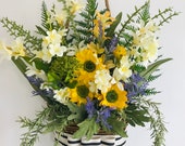 5 out of 5 starsI ordered a beautiful basket with my favorite purple and yellow daisies for my front door. It's gorgeous. I just love it. My only problem is that now I'm not sure I want to hang it on the front door -- I'm thinking I'm going to hang it inside in my living room so that I can see it all the time instead of my neighbors. LOL. It was securely packed for shipping, too. It looked like it couldn't have moved around at all even if the box got tossed around. Would definitely buy from Futzy Farm again.