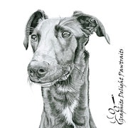 Unique lifelike graphite pencil drawings from photographs. Also beautiful handmade martingale collars and sighthound snoods.