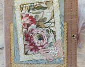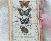 5 out of 5 starsJunk journal handmade hardcover travelers size. Features the soft wings of butterflies throughout. Very soft colors of spring and vintage feel of genuine leisure for creativity of spirit. Flight of the butterfly. Plenty of space to record your daily thoughts, prayers, or inspirations