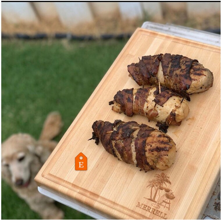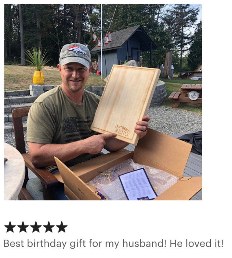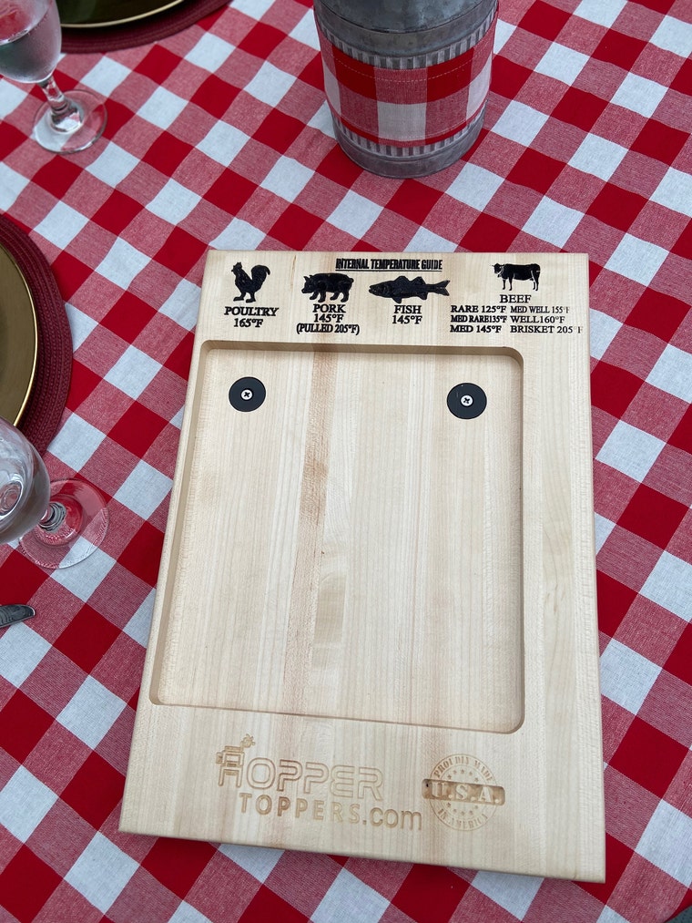 5 von 5 SternenLovely, great quality board! Customization and shipping were prompt. It fit my husband's Traeger perfectly and is a very useful size. His only complaint/recommendation is that it could use feet for use in the kitchen; they would make it much easier to pick up from the counter and less mess when buttering it.