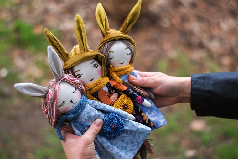 The idea of sewing dolls came to me in a small toy shop in Antibes - a town in France near Nice - we were on holiday there with my husband. The shop seemed like an old time toy shop - every piece in there looked unique and special. There were no loads of plastic toys made in China and without a real personality. You could touch wood and textile there - natural and meaningful materials. There I found some cloth dolls and fell in love with them immediately. I couldn't buy them because we entered the shop to buy a present for our 1 year old son and dolls weren't on the list. But I couldn't forget the beauty of unique handmade cloth dolls. When we came back home I started my journey of sewing dolls and so far it's been an incredible and amazing experience.