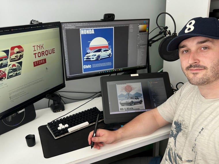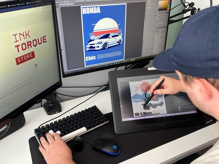 Designing clean, bold car art for real enthusiasts—every piece starts right here at my desk. -