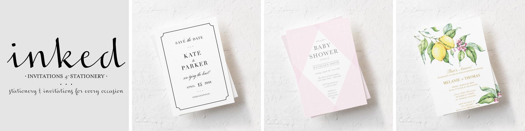 Welkom bij Inked Invitations and Stationery, waar we gespecialiseerd zijn in aangepaste huwelijksuitnodigingen en briefpapier dat u en uw gasten zal verbazen!