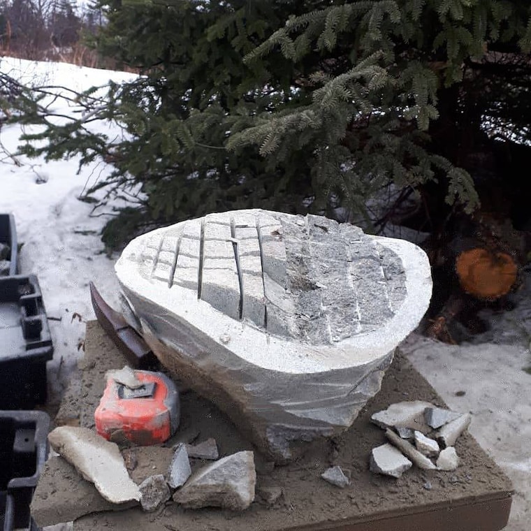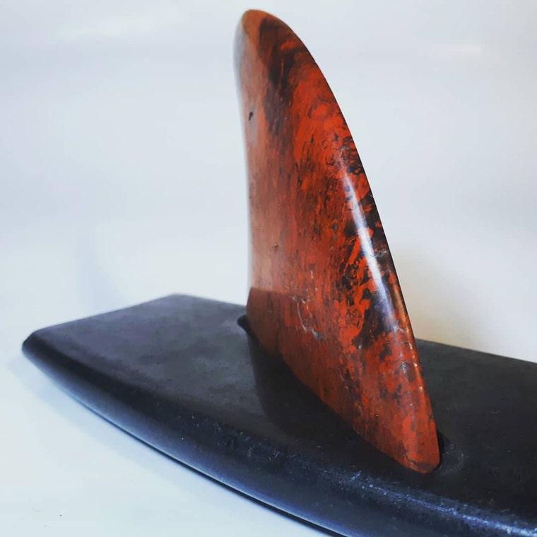 Custom Surfboard sculpture. Red Jasper and Black Granite.