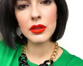 The first pair of earrings I made was in 1989. They were neon yellow beads shaped like Emma Wiggle hair bows, dangling from a single strand of black “gimp,” and tied in a knot at the bottom, I think, to keep the bead from falling off. I have no idea how I fastened them to my ears. Thirty-three years later I’m happy to say I’m still the same person—designing, creating, making, and sharing all the things, especially in bright colours with black accents.