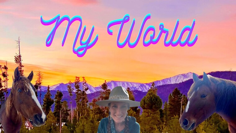 Dixie on my left and Callie on my right. The Highlands, viewed from my pasture, behind us. -