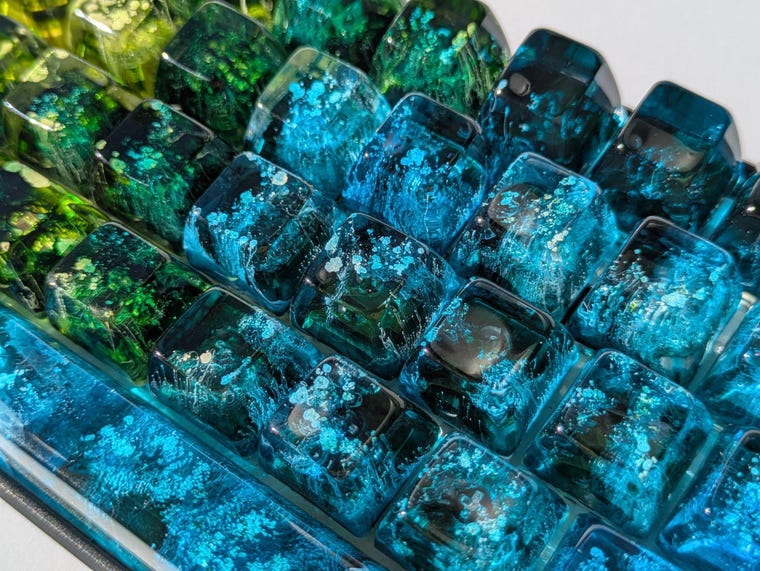 Decidí hacer el mío. En aquel entonces, había un juego de moldes de silicona para teclas en el mercado; los compré y empecé a experimentar con ellos. Las teclas resultantes fueron un buen primer paso, pero no eran exactamente lo que quería. También hice algunas teclas recubiertas de arcilla, que fueron muy divertidas, pero aún más laboriosas (y funcionalmente inservibles). A medida que experimentaba y probaba, comprendí por qué las teclas artesanales que había visto antes habían escaseado.