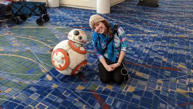 Me with BB-8! We had a lovely conversation... I think we're besties now?