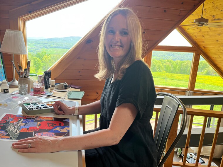 Kate’s work is presently on exhibit in several locations in northern Vermont, including the von Trapp Family Lodge & Resort, Citizen Cider, and Rock Art. For most of 2025, a collection of her art was on tour in Boston, Chicago, and Los Angeles.