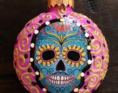 5 de 5 estrellasI love this sugar skull ornament! The flat shape was unexpected but wonderful and I really appreciate the craftsmanship that went into making it so bright and festive. The skull pattern is on both sides which is a nice touch! Thanks!