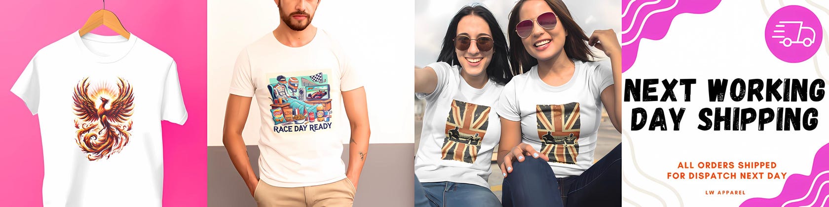Every design we create starts with personality. Some are inspired by what we love such as racing, British culture, bold art, and everyday humor. Others come from our customers who want a shirt that actually says something about them. We do not chase trends or copy what is already out there. We make pieces that stand out for people who do the same.