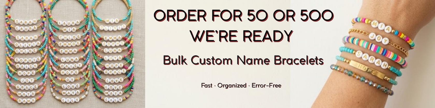 Yes, absolutely! Each bracelet in your bulk order can have a different name, word, or number — up to 12 characters each. Just send us a list during checkout or via message, and we’ll take care of the rest. It’s perfect for teams, classrooms, and special group gifts!