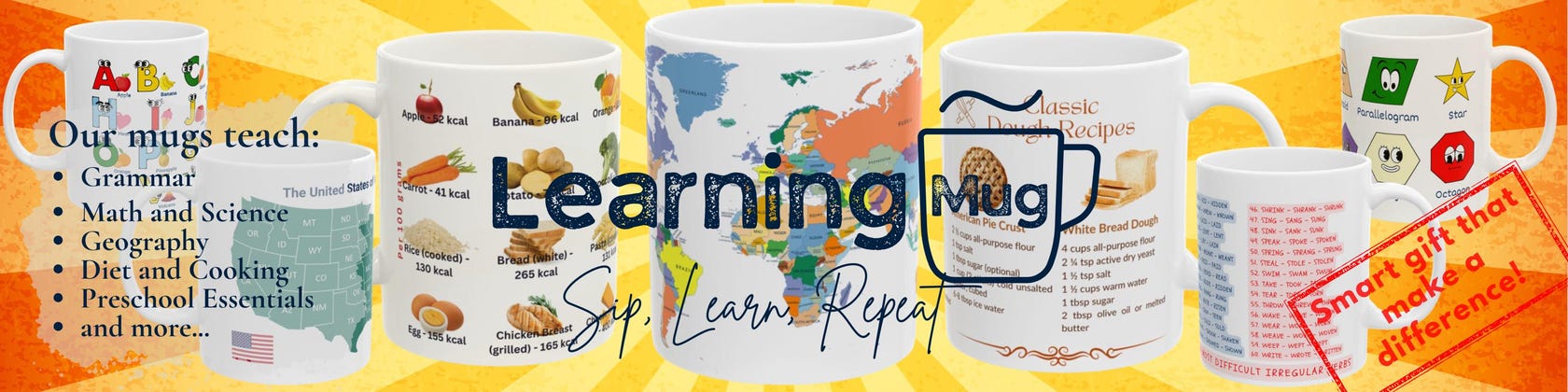 Each of our mugs is meticulously designed to not only serve as a vessel for your favorite beverage but also as a gateway to knowledge. From vocabulary lists, geography to math and literacy, our mugs are curated to make learning fun and accessible.