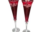 5 out of 5 starsThese ruby red, fine glass champagne flutes are even more beautiful than depicted. I purchased them for a Christmas wedding to be held on Winter Solstice. The glowing color will definitely enhance the wedding festivities and remain as a treasured keepsake for years to come. The box arrived ahead of schedule and although made of such delicate crystal, they were packed to withstand the zombie apocalypse and arrived in Alaska in perfect condition. Highly recommended.