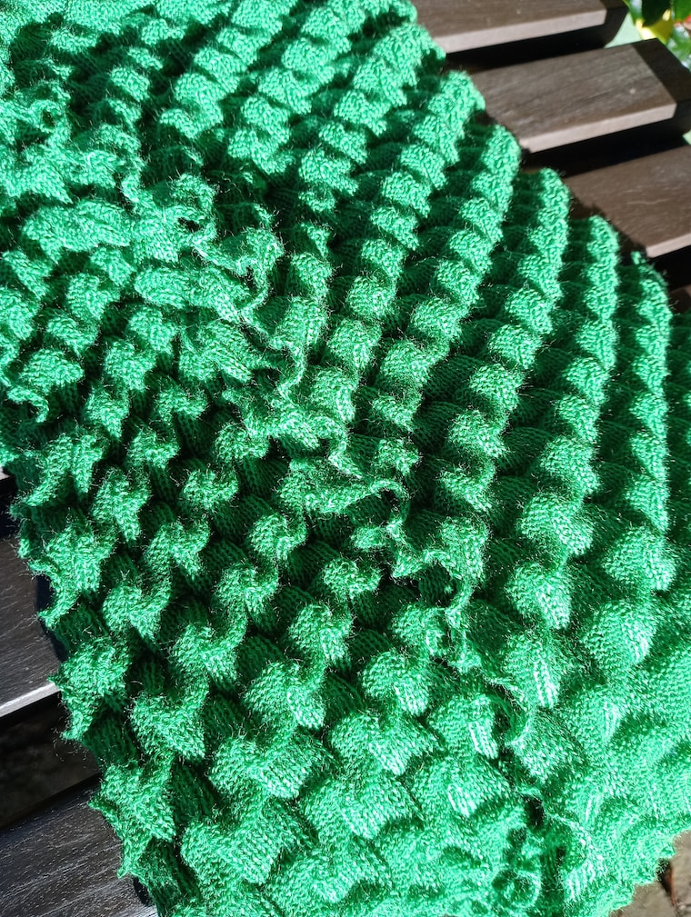 This is a close up of my punchcard Origami scarf pdf pattern download for Brother machines with garter carriage. -