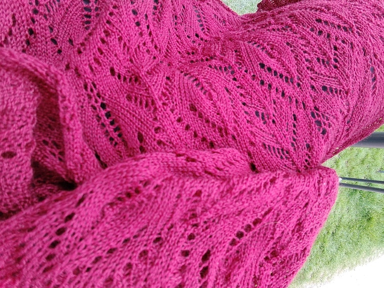 This is my Peacock Feather showing it's triangular shape, pdf download for Brother knitting machines with lace carriage. -