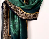 5 out of 5 starsLovely scarf! It looks royal and I cannot wait to wear it with my green satin pajamas. It's large but I use these scarfs to wrap my hair before I go to sleep. It so beautiful! Thank you.