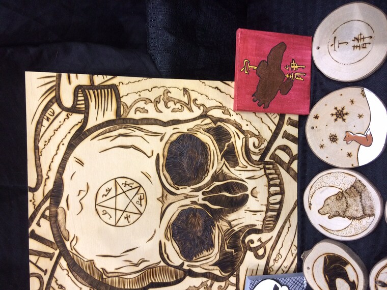 Owner and designer for Michelle's Geekery LLC. I create in woodwork, pyropgraphy, paint and more recently graphic design work that I use to create geek and dark cottagecore clothing and decor. Check out my socials for some how to posts and videos.