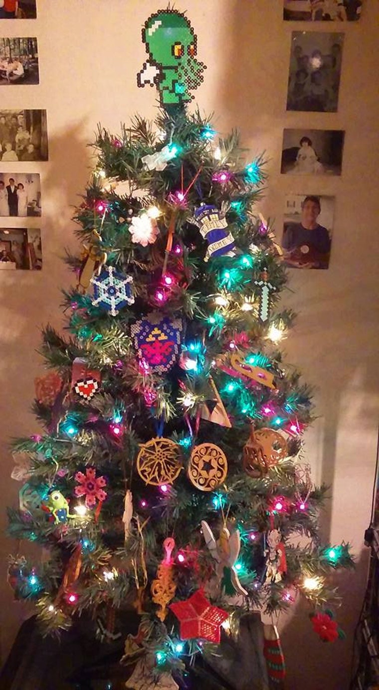 Our Christmas tree decked out in all our geeky goodies! -