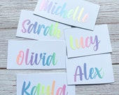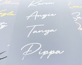 Our decals are sold by length, and the height adjusts automatically based on how many letters are in your name.