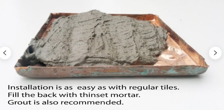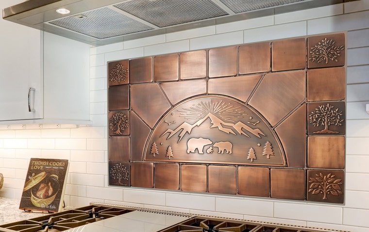 Copper looks stunning and it has a softness in it, while still being a wonderful bold and shiny accent. Metal finishes will make a big impression on a space and will always look stylish high end. Use our copper tiles in columns, kitchen walls,archways and stairway risers. These copper accents make dramatic designs as kitchen backslashes, range hood ornament and fire places facades.