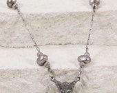 5 van 5 sterrenDeze Sterling Silver Grey Pearl ketting is zo delicaat en prachtig. Het doet denken aan een vroeger, elegant tijdperk. Uitstekende klantenservice, inclusief mooie verpakking, doordachte notitie en snelle verzending. Bedankt, Sheri.