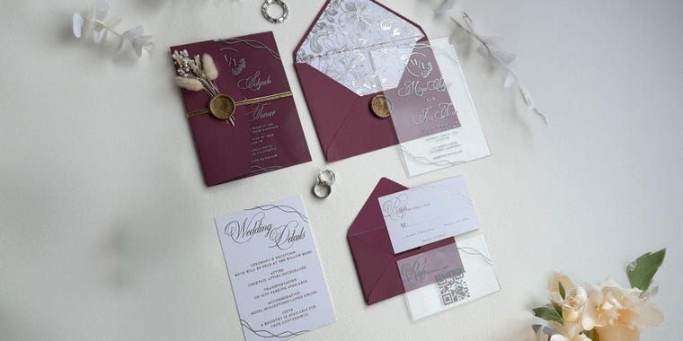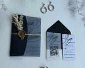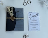 Clear acrylic wedding invitation created for couples who love minimalist and modern wedding style.