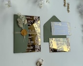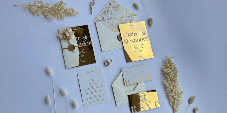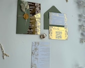 Gold mirror acrylic wedding invitation with a refined, luxurious finish for modern weddings. -