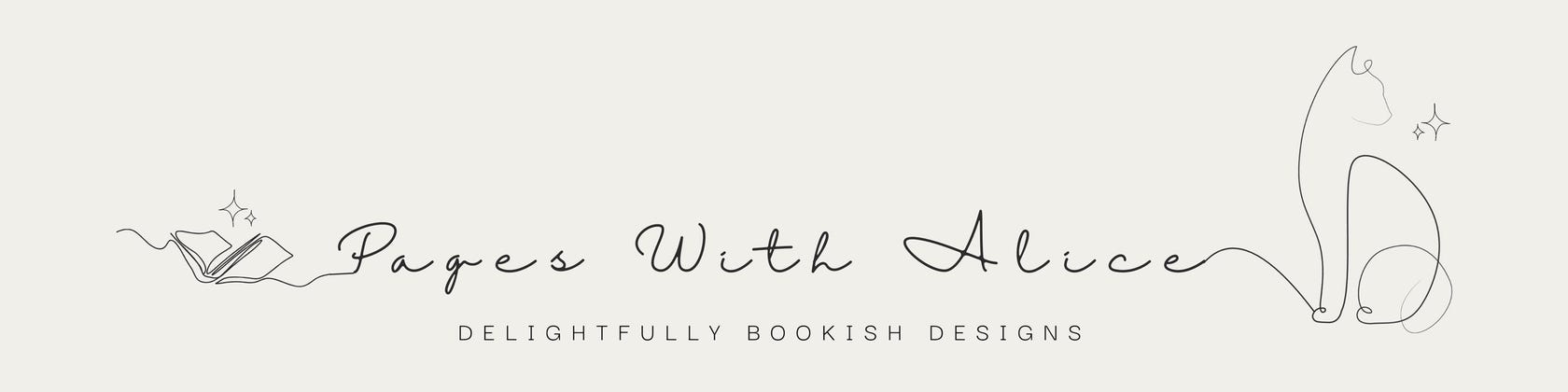 Welcome to “Pages With Alice!” I am absolutely thrilled you’re here, and the most heartfelt thank you for supporting my small business of delightfully bookish designs! I’m Taylor, a mom of 3 living in Texas, and I am absolutely obsessed with all things books, especially Fantasy & Romance.
