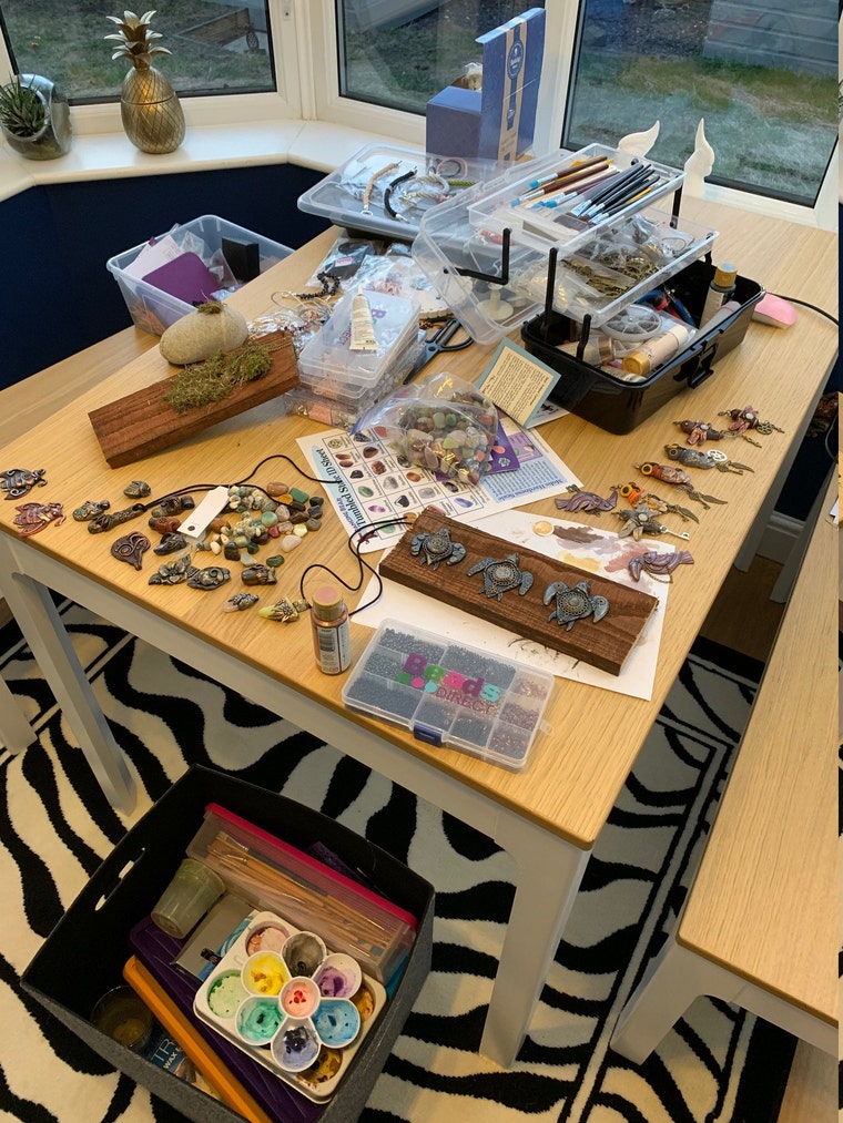 Working on my table in my conservatory....thinking I NEED a studio. #toomuchstuff -