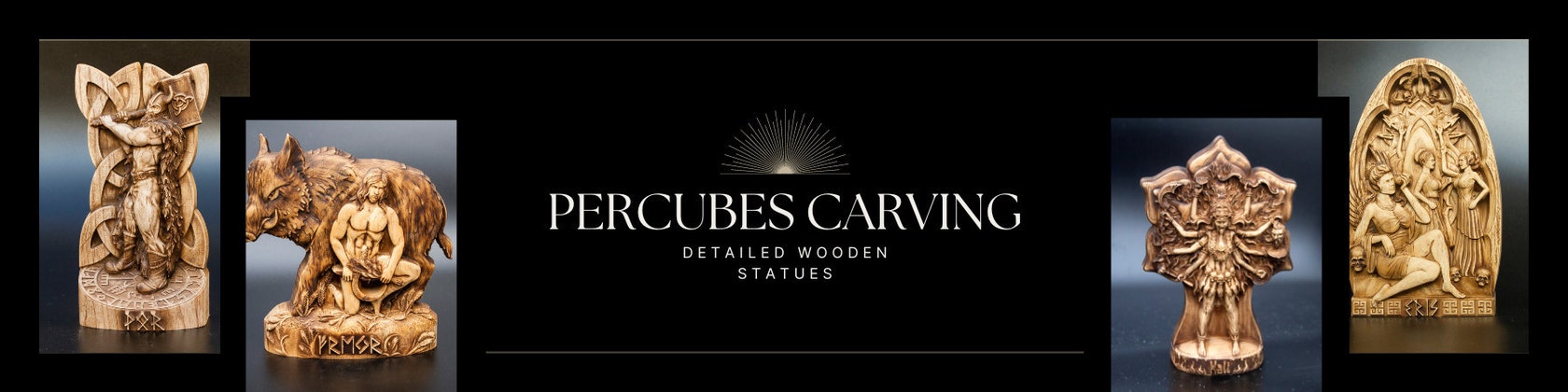 We create handmade wooden statues inspired by gods and figures from different mythologies — Norse, Greek, and beyond.