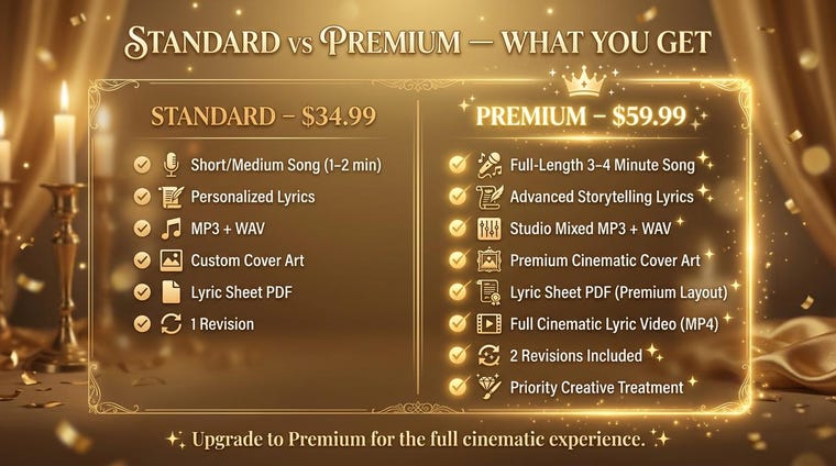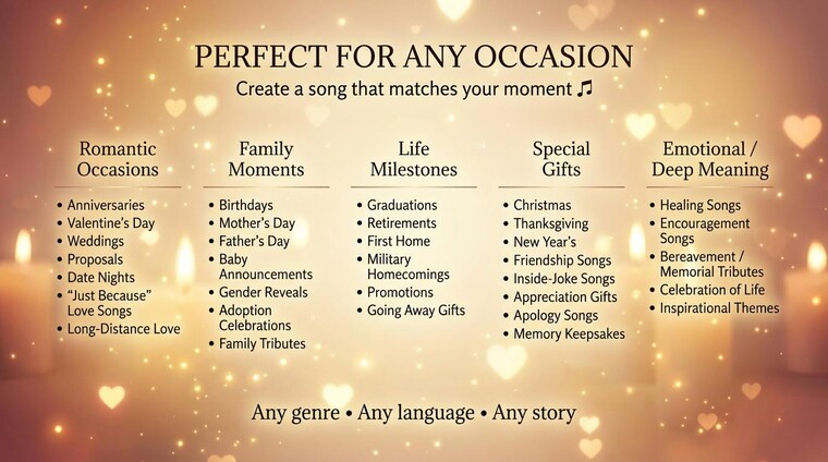 From heartfelt birthday messages to anniversary surprises, from emotional love notes to fun family memories every song I create is tailored to the details you share. No templates. No generic lyrics. Every track is built from scratch with love, care, and intention.