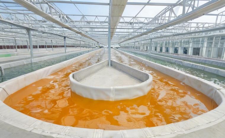 Exterior view of our large-scale Dunaliella salina greenhouse -