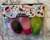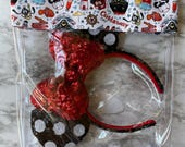5 de 5 estrellasExactly what I’ve been in search of! I wanted a cute semi-clear pouch that could fit my small pinfolio boards that I can display outside my bag. I purchased the small size for the boards and they fit a full pin board perfectly and I can even squeeze another blank pin board. I requested a piece of fabric that I can add a keychain ring to and I’m appreciative that she was able to add it and was thorough on how I wanted it. Shipping was fast and I’m just in love with the print and quality. Glad I also purchased a medium to carry inside my bag. Overall, so incredibly happy !