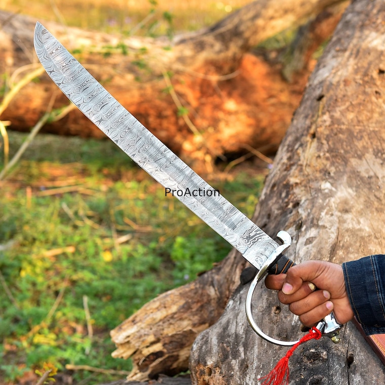 4 out of 5 starsBeautiful Damast Steel. Cant really say anything negative, at that price of 140$. Is as pictured. The only minor Detail is the Handle is screwed on with the Nut visible wich doesnt look "original".