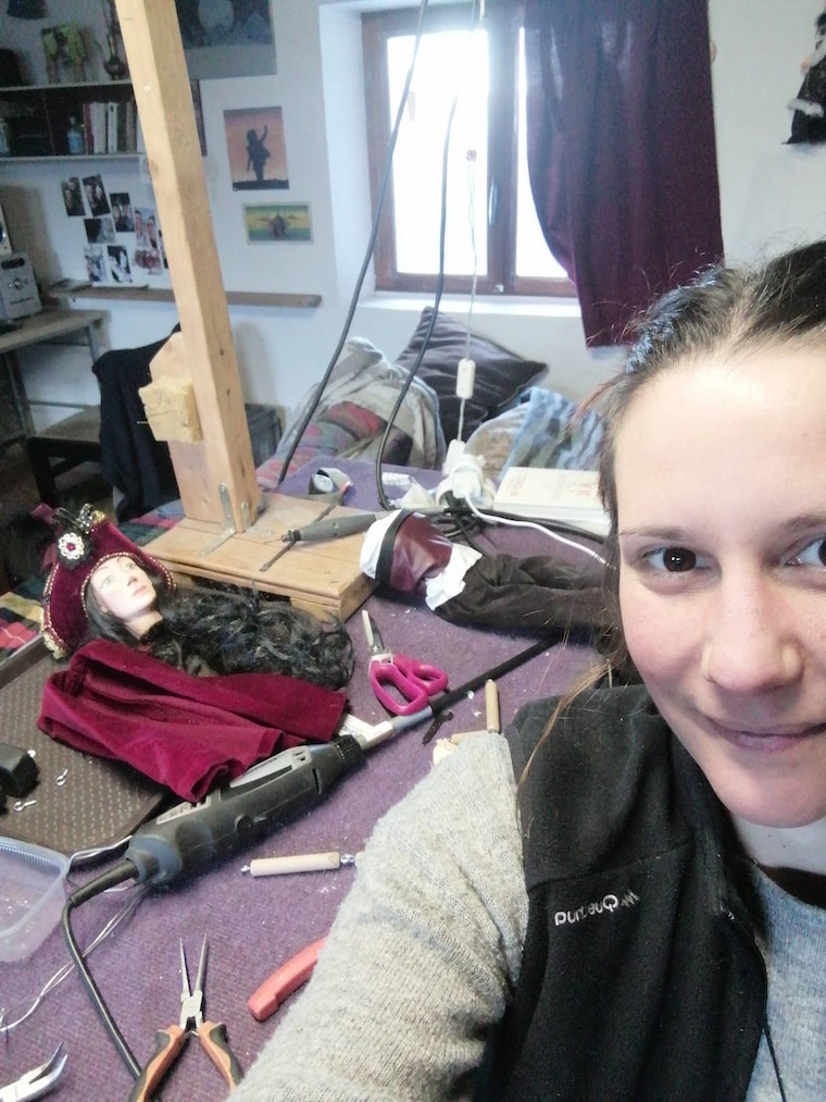 Elle m'as proposer de me former et on a donc entrepris une formation de 6 mois au total. J'ai passé 3 mois à apprendre la fabrication des marionnettes à fils, et elle m'a former pendant 3 mois sur son spectacle .J'ai eu le plaisir de mettre en scène de fabuleuses marionnettes plus authentiques les unes que les autres, et par la même occasion voir briller les yeux du public face à ma performance.