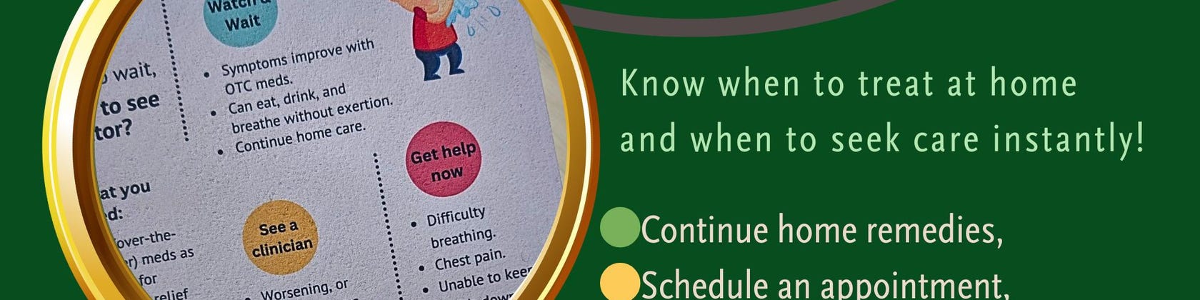 In addition to providing the basics of cause and care of each medical topic on the cards, it is also very important to me to communicate when to treat at home, when to schedule an appointment and what scenarios necessitate an immediate professional evaluation. That's where my "traffic light" system of home triage was born.