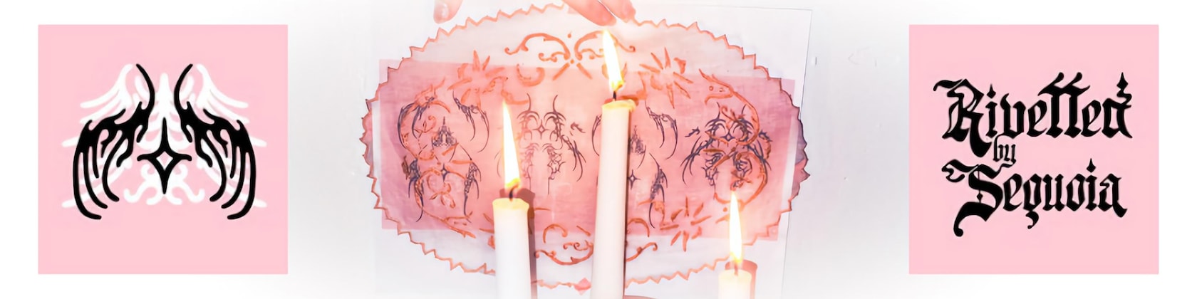 Now, Rivetted embraces a more evolved visual language: Pastel and neon highlights, elements of coquette, cyber, kawaii, and gothic fashion. Signature details include ruching, draping, mesh, and ribbons; inspired by squiggly demons and tribal tattoo-style cybersigilism graphics; angel wings in both chibi and realistic forms.