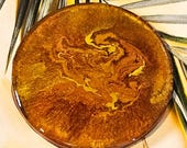 5 von 5 SternenI HIGHLY recommend this seller! This coaster, as well as the two others I purchased (one round, 2 square) are the most beautiful I have ever seen. So unique, just rare beauties the colors are breathtaking, honestly. Made in exquisite and beautiful taste. They are show pieces, really. They shine so bright and are not too heavy, either. Just right. As far as coasters go, this is where I'll purchase mine. Packaged immaculately and shipped very quickly with all items very well protected. I'm so happy with all of my purchases and I will definitely be purchasing again. This seller is wonderful. Looking forward to purchasing more items for sure! Thank you very much.