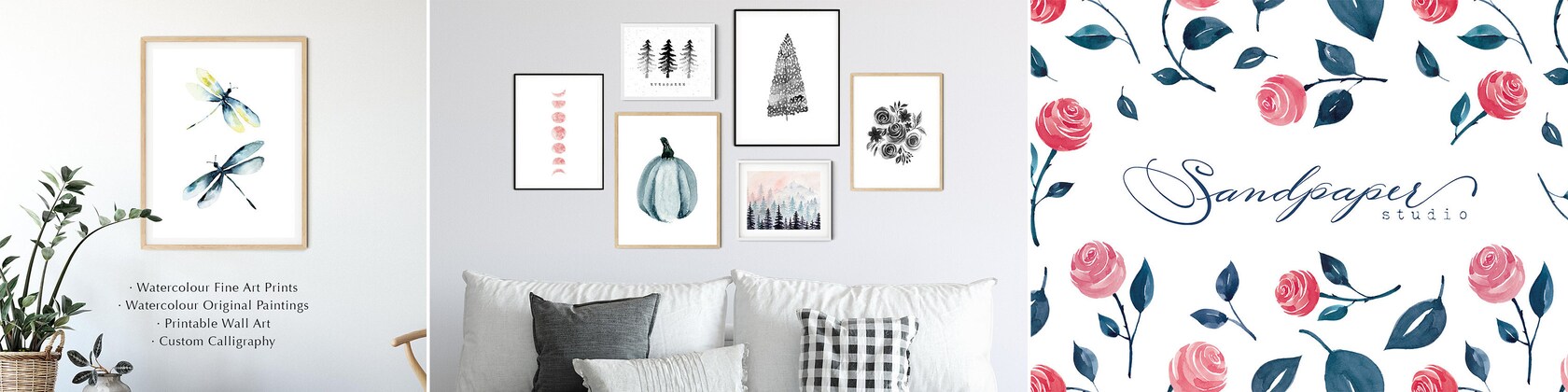 Thank you for dropping by my shop! Sandpaper Studio was born out of a need to reconnect with my artistic roots via a consistent daily practice, and to transform that practice into an artistic business to share my work with others. I've been drawing and painting for as long as I can remember and have often found comfort and grounding in reaching for a pencil, or a paint brush, and a pad of paper. I've explored many artistic mediums over the years and have happily planted myself within the interconnected worlds of lettering/calligraphy, and watercolour design. My work is whimsical, inspired by the world and nature, and dances between minimalism and classic detail.