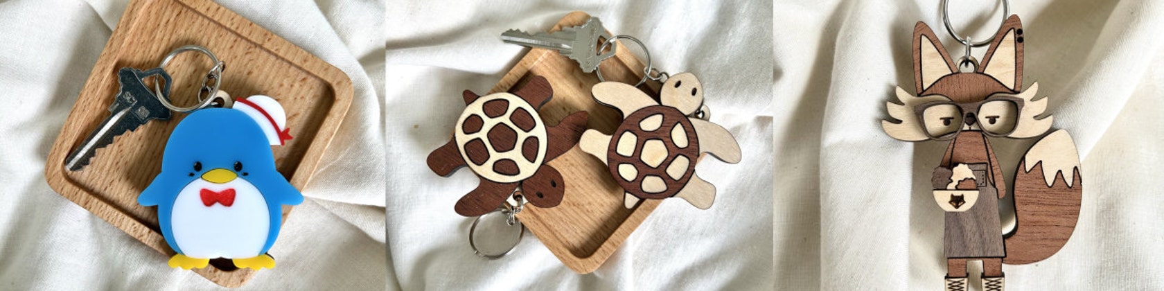 I also use a laser machine to cut wood and acrylic and turn them into fantastic, kawaii accessories. I have been focusing on keychains or bag charms but I'll use my laser machine in many creative ways so you can find engraved pencils and wooden photo frames.