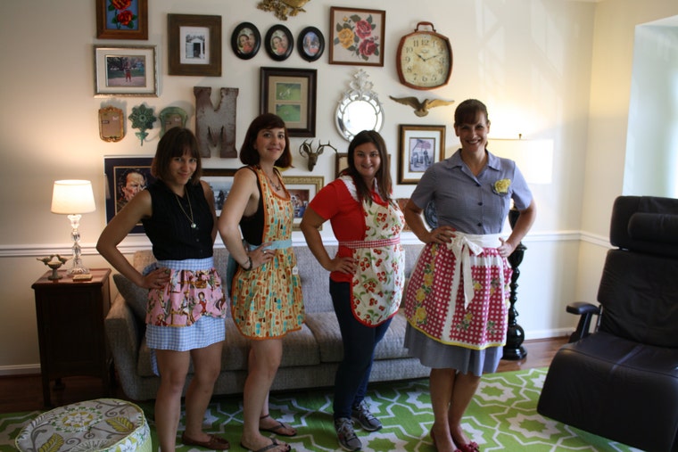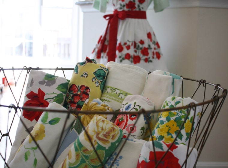 I have a particular soft spot for aprons because what’s better than the feeling of being wrapped up in a protective and pretty embrace, especially when the fabric has a history?! Many of my aprons are made from vintage, 1950’s tablecloths.