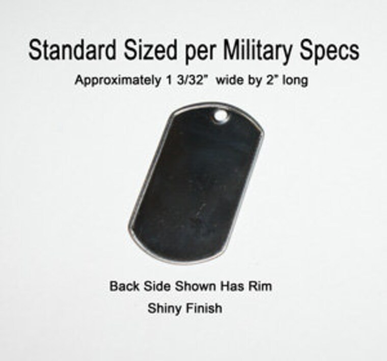 Standard Stainless Steel Size Dog Tags made to Military Size Specifications. Small size every time! No surprises! -