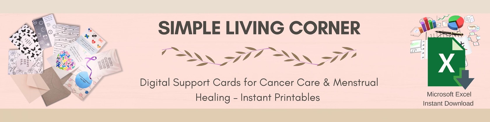 Jag började skapa utskrivbara stödkort och enkla hälsoverktyg som en form av självmedkänsla. Inga överdrivet blommiga ord – bara sanning, empati och lugn. Oavsett om du ligger hopkurad i sängen med kramper eller försöker rensa ut ditt utrymme för att känna dig lättare, hoppas jag att dessa artiklar ger dig en liten lättnad.