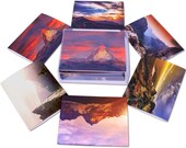 5 out of 5 starsViewing these various sunset mountain landscapes with vibrant or subtle colors gives me the feeling of soaring high above the skies. Would recommend this set to others.