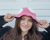 3 out of 5 starsCute hat, but wasn’t like the picture. I thought it would come out as the picture (light pink) and it came hot pink. Maybe I should’ve added a note but just thought that the pink would come out like advertised. I wanted it for a toadette costume and it doesn’t match. Took a while to get shipped but I understand it takes time to make the hat.