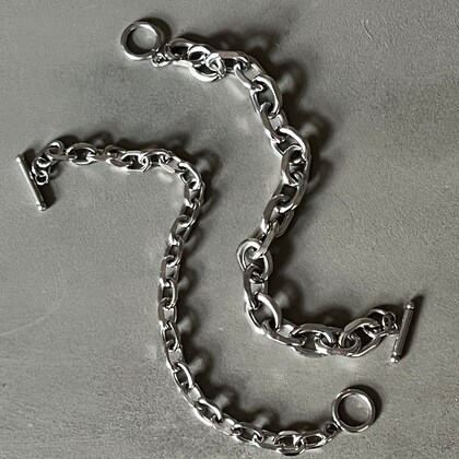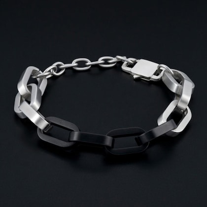 Mi pasión por el acero nació de su sencillez, versatilidad y resistencia: es un material sin pretensiones que siempre resiste. Es mi material predilecto para joyería porque se siente robusto y no requiere mucho cuidado.