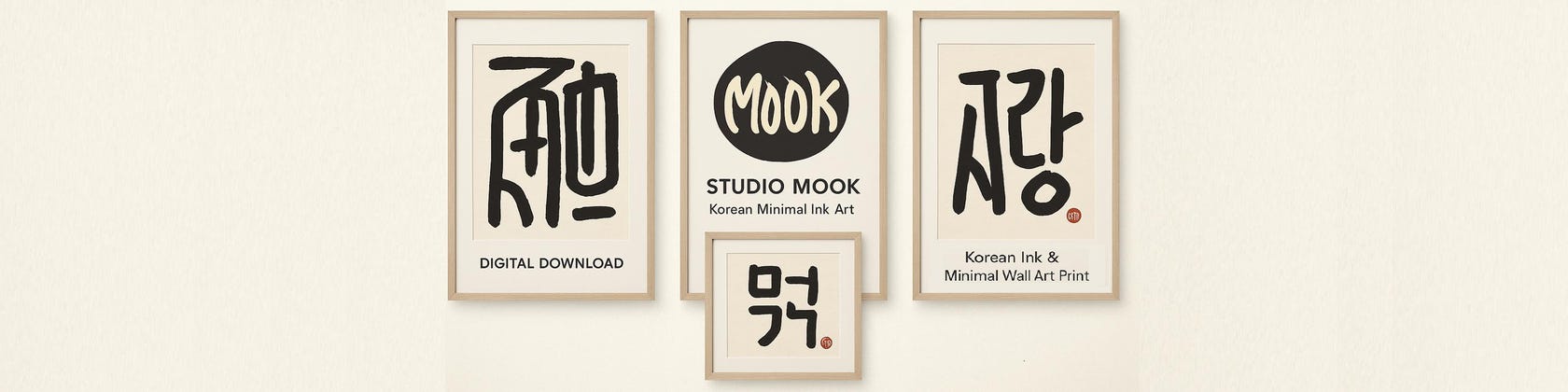 Hi! I’m the artist behind Studio Mook. I create modern Korean ink art inspired by calm spaces, simple brushstrokes, and the quiet beauty of Hangul. I hope my work brings a small moment of calm to your home. Thanks for being here.🖤